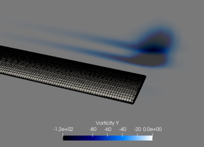 To generate a lift force, an aircraft airfoil should effectively generate high pressure in the bottom surface and low pressure (suction) on the top surface. The problem for a 3D wing is at the tip of the wing a “leak” flow occurs because of the pressure difference between top and bottom surface. This flow finally create a rotating motion and accumulated become a vortex known as tip vortex. This vortex can reduce lift and increase drag which adversely affect the wing’s performance. We can utilise wing tip devices such as end plate or winglet to get rid or at least reduce the tip vortex. With Computational Fluid Dynamics (CFD) simulation, we can easily predict this phenomenon; this simulation is done with openFOAM CFD program.